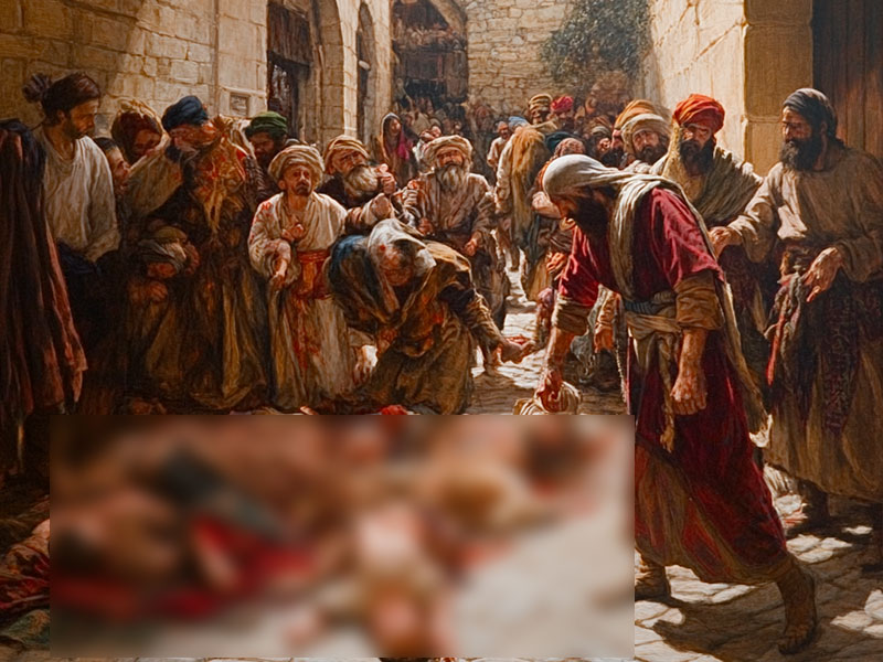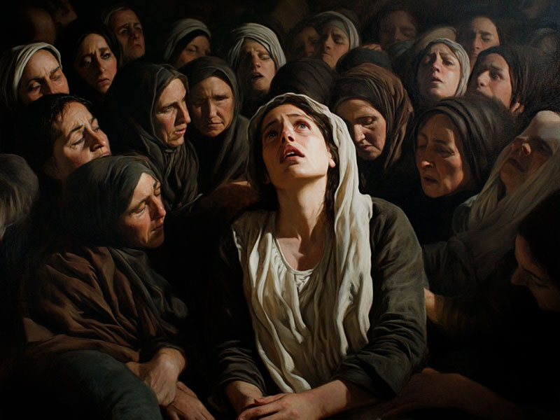 "Ouviu-se uma voz em Ramá, choro e grande lamentação; é Raquel que chora por seus filhos e recusa ser consolada, porque já não existem".