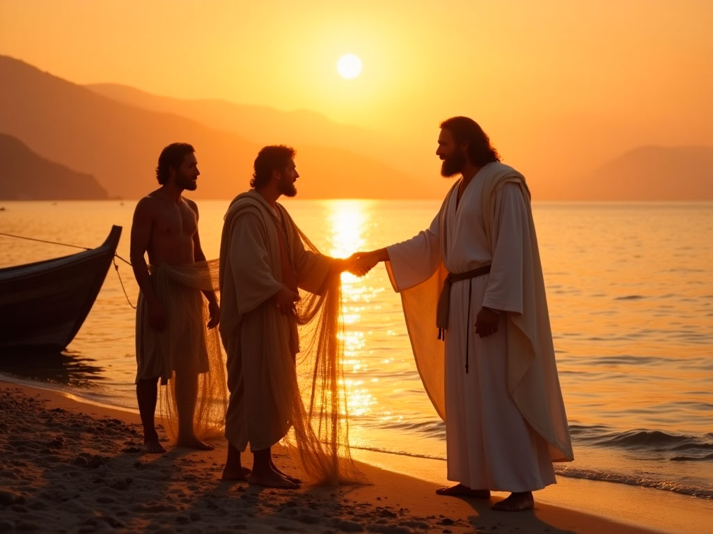E Jesus, andando junto ao mar da Galileia, viu a dois irmãos, Simão, chamado Pedro, e André, seu irmão, que lançavam a rede ao mar, porque eram pescadores;